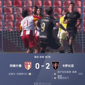 08月15日讯 25/26赛季葡超联赛第2轮,阿维什镇主场对阵卡萨比亚。上半场,巴博萨错失点球良机,奥桑迪纳为卡萨比亚打...