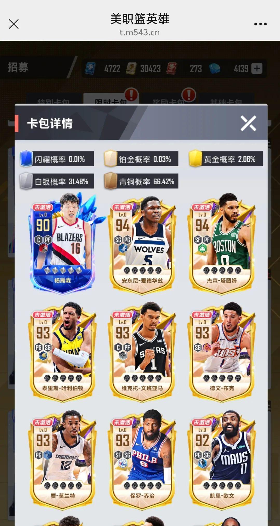 扫码进入游戏-卡包商城,即可抽取杨瀚森纪念卡